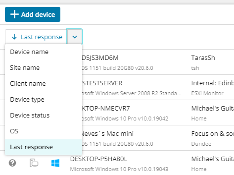 Now it’s possible to sort by columns on the Monitored Devices view, so it’s easier to find the devices you’re looking for. You can access the Monitored Devices view from the left-side Dashboard menu.