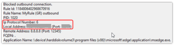 Added to Firewall logging of the Windows Event viewer: IP Protocol Number, Local IP Address, and Local Port automatically with no additional configuration.