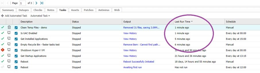 We’re very pleased to share that when you now run Automated Tasks on demand, you can see the output of the script in near real-time — typically within 20 seconds or so, depending on how long the script itself takes to run.