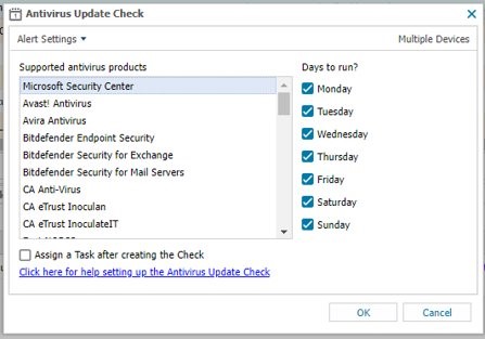 It is now possible to select ‘Microsoft Security Center’ in the Antivirus Update Check for Windows workstations. The new check option can be used to monitor any third party antivirus product that’s installed on Windows workstations.